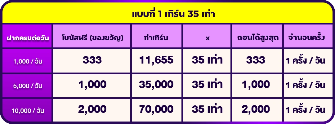 ✅ นับยอดฝากไม่รับโปร / วัน